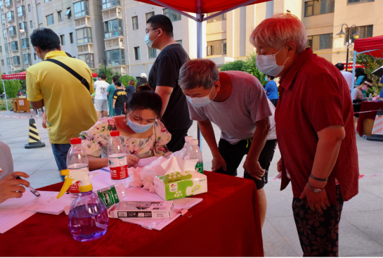 8月6日,我校东区家属院开展首轮全员核酸检测。前一天下午,学校党委组织部向各基层党委招募党员志愿者协助开展检测工作,我院教工第三支部党员冯建成老师第一时间主动报名党员志愿者,协助开展检测工作。在检测当天,我院张艺蝶、解学晖和崔广立老师也主动参与到核酸检测的志愿者服务工作中。顶着炎炎酷暑,志愿者们与医护人员一起,通过8个多小时的连续奋战,圆满完成了此次任务。党员教师们勇于担当,扛起防控责任,让党徽闪耀在防疫一线,为助力社区疫情防控做出了应有的贡献。与此同时,副院长张笑涛、小学教育教研室主任徐来群已经报名了第二轮核酸检测的志愿者。