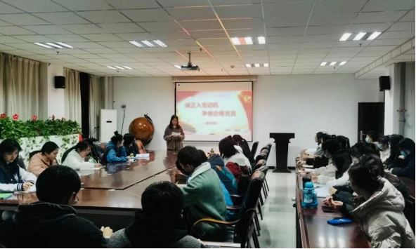 12月3日下午,我院辅导员周恩西为积极分子上了《端正入党动机、争做合格党员》的主题党课,围绕什么是正确的入党动机、怎么端正入党动机等问题展开讲述,帮助入党积极分子在思想上更加深刻地认识党组织,更加清楚地了解怎么在日常生活学习中不断提高党性修养。