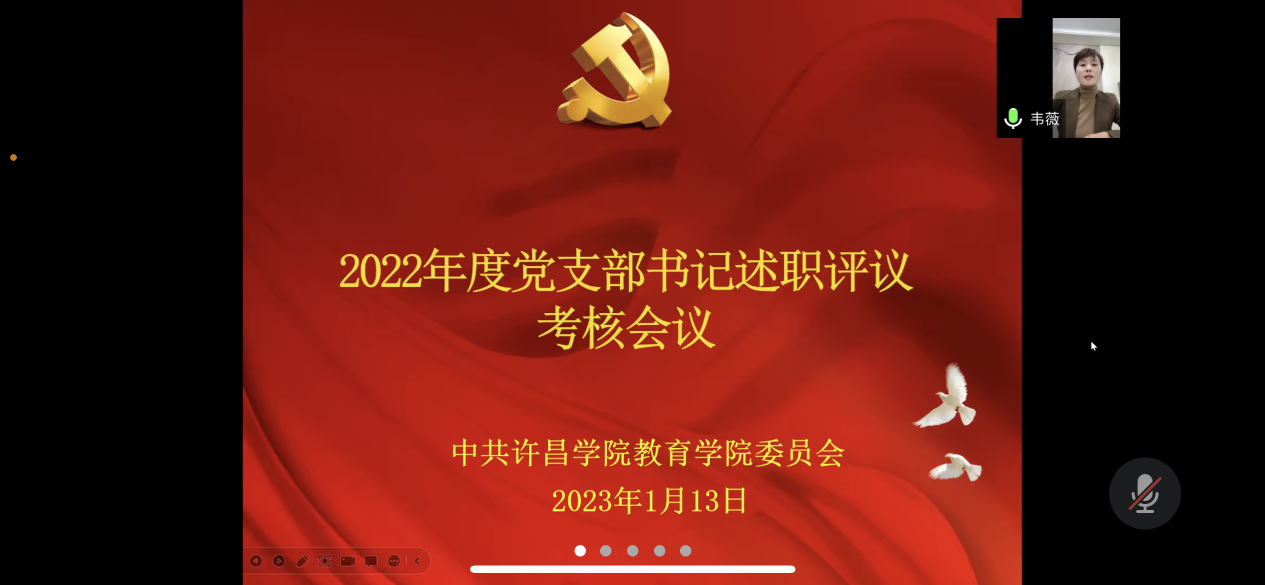 在认真听取各支部书记的述职汇报后,韦薇书记对大家一年来的工作表示肯定,同时也对各支部下一年的工作提出了三点要求:一是要继续深入学习宣传贯彻党的二十大精神,深刻领悟“两个确立”的决定性意义,全面贯彻习近平总书记重要讲话、重要回信精神,贯彻党的教育方针。二是着力打造高质量党建特色品牌,积极挖掘和宣传先进典型、优秀事迹,结合支部师生专业特长,提升立德树人质量。三是积极推动创建省级样板党支部,以支部为抓手提升学院的党建工作水平。