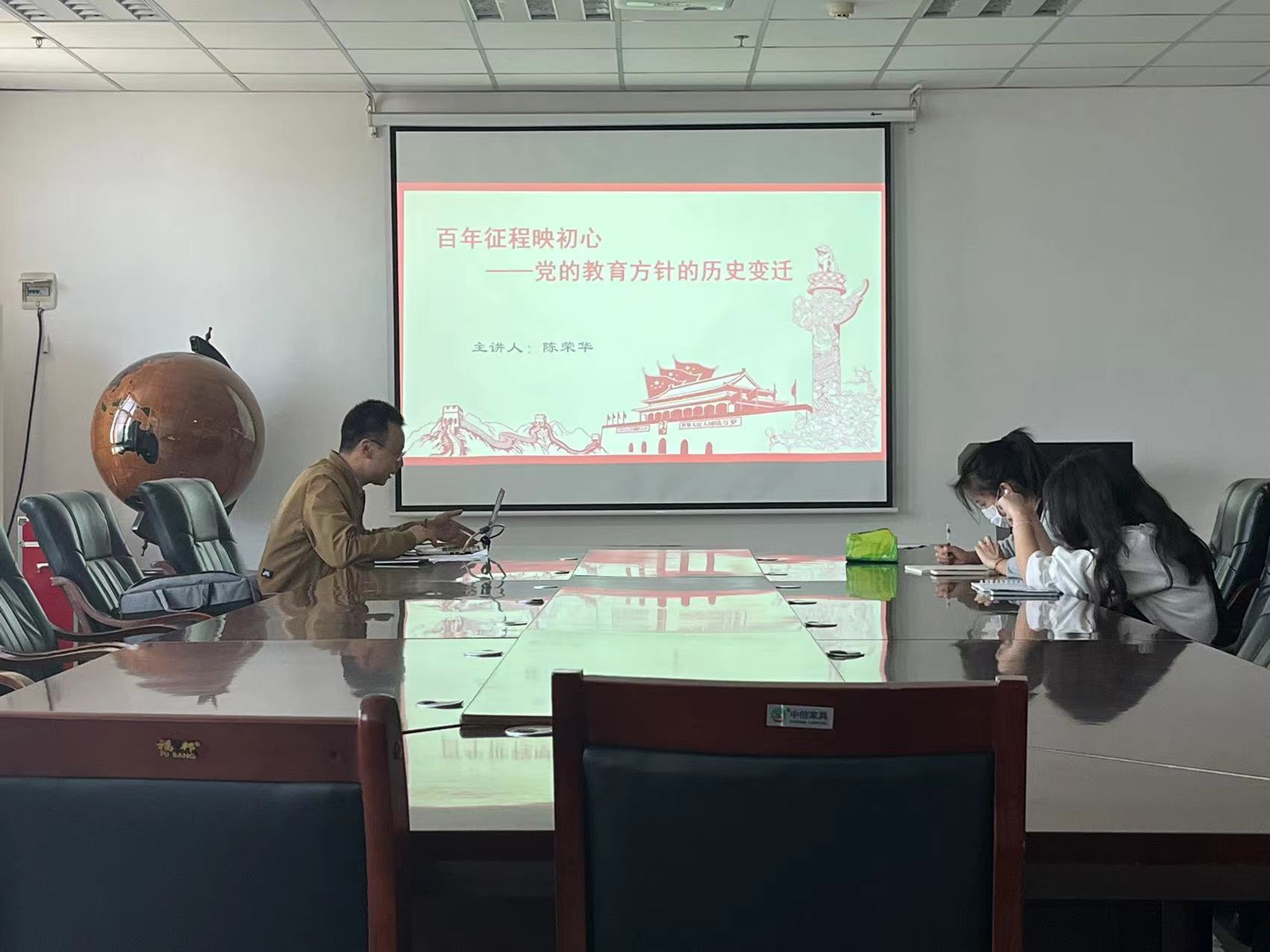 4月10日中午,我院党委副书记陈荣华以“百年征程映初心——党的教育方针的历史变迁”为主题开展分党课。课上,陈荣华首先讲解了如今党的教育方针,接着从新民主主义革命时期,社会主义革命时期,新社会主义教育时期深入学习中国百年教育方针的发展。