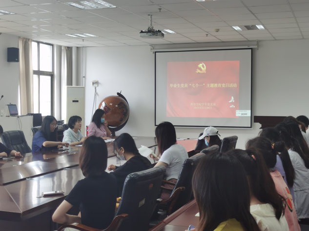 5月26日中午,我院学生党支部在文综楼1621会议室开展毕业生党员“七个一”主题教育党日活动,学生第二党支部书记程彩云、院组织员刘馨婷和全体学生党员参加会议。