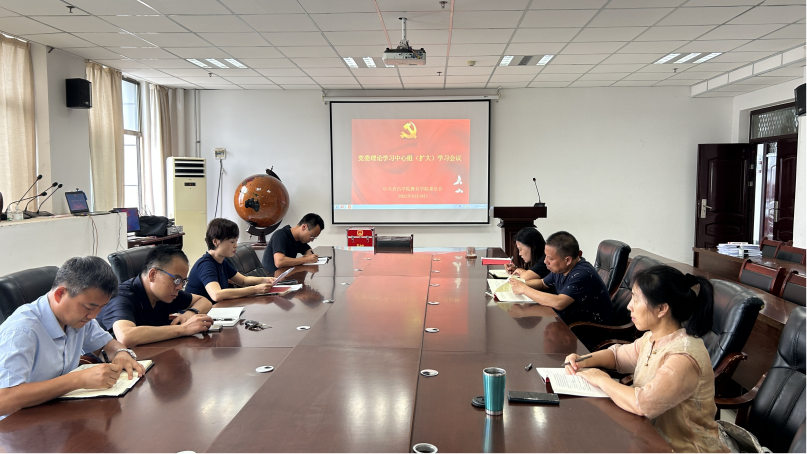 8月19日下午,我院在文综楼1621会议室召开党委理论学习中心组(扩大)学习会议。党委理论学习中心组成员、党支部书记参加会议。