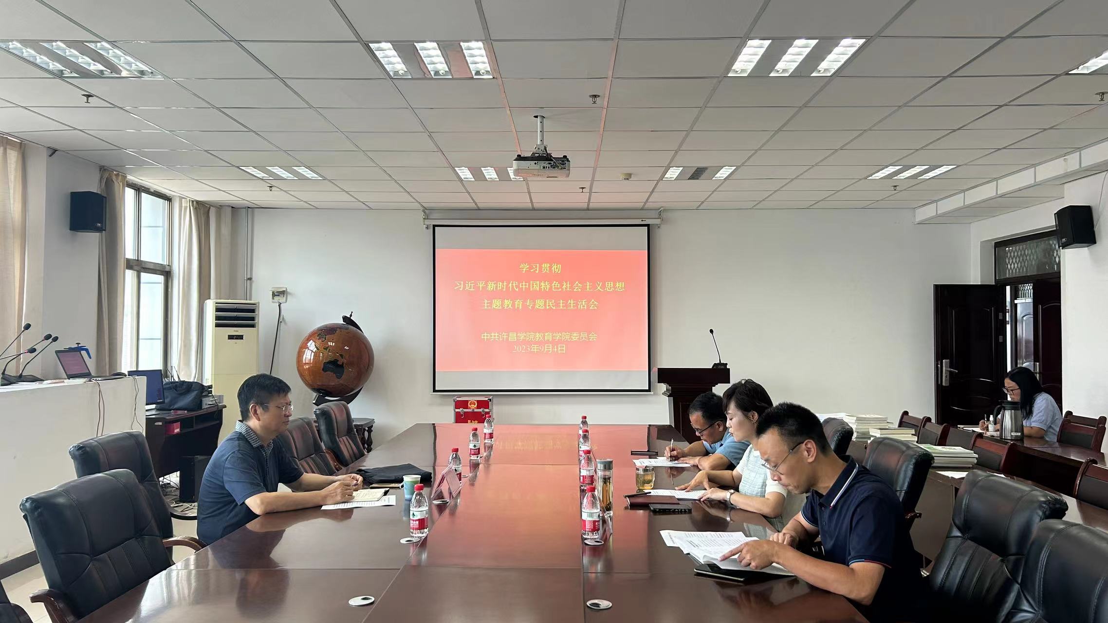2023年9月4日下午,教育学院学习贯彻习近平新时代中国特色社会主义思想主题教育专题民主生活会在文综楼1621会议室召开,校党委副书记、工会主席梁予昉到会指导,教育学院领导班子全体成员参会,会议由院党委书记韦薇主持。