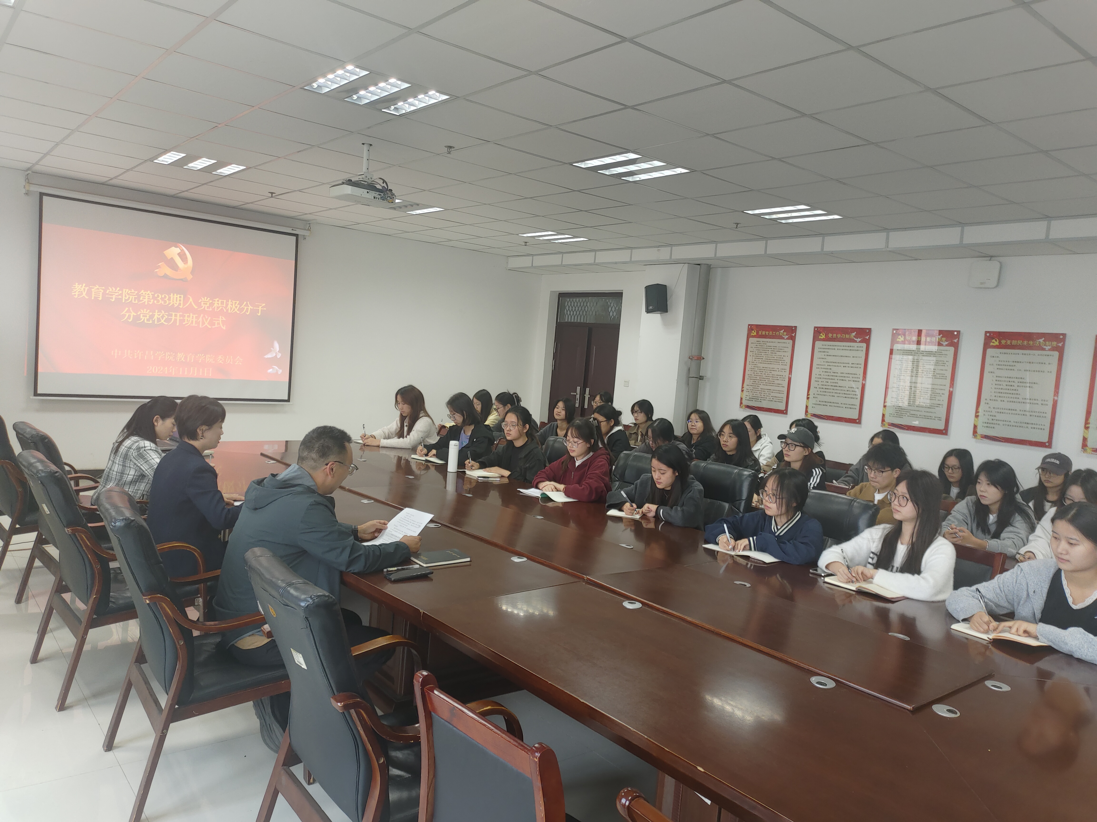 11月1日,我院在文综楼1621会议室举行第33期入党积极分子分党校开班仪式。我院党委书记韦薇、党委副书记陈荣华、组织员姚晓辉、党支部书记李亚珠及本期入党积极分子参会,开班仪式由陈荣华主持。