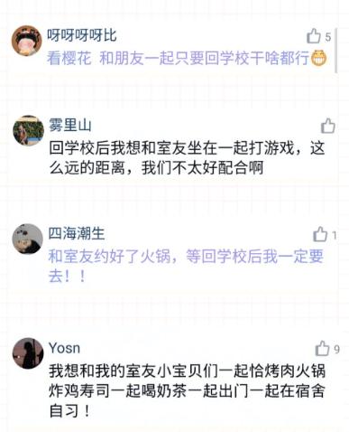 此次主题讨论活动,引起了我院学生的热烈响应和积极参与。活动旨在让学生们通过QQ评论的方式表达自己的想法,这些评论意发于心、情动于衷,评论中有“想要看樱花”、“想要去食堂、图书馆”这样对疫情早日结束的渴望;有“战新冠”、“武汉加油”这样为疫情防控阻击战加油鼓劲的声声呐喊;还有更多的是“感谢最美逆者”、“最美医护人员”这样在疫情过后想对为抗疫而努力付出的工作人员表示的由衷感谢和崇高敬意。