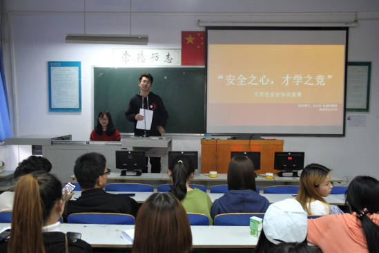 为增强同学们的安全意识,普及安全知识。2019年11月1日下午,教育科学学院举办的以“安全之心,才学之竞”为主题的大学生安全知识竞赛在A2-301教室举行。