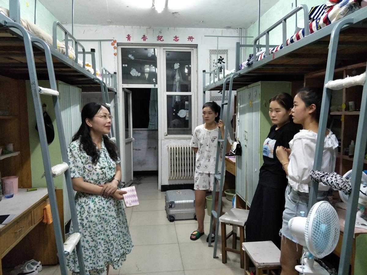 9月1日晚上,我院领导和辅导员袁朝阳还到宿舍看望和慰问2019级专升本新生,询问他们进校后的感受以及饮食、生活、兴趣爱好等方面的情况,还对新生关心的问题给予了答复。走访中,辅导员袁朝阳对同学们提出殷切希望,要尽快转变角色,熟悉新的环境,团结同学,处理好各种人际关系,以积极的心态和良好的面貌适应新的大学校园生活。还叮嘱同学们要注意宿舍用电、外出交通和人身财产安全,要强化安全意识和自我保护意识,遇到困难要及时和辅导员、老师、同学沟通交流,希望大家一起共同度过美好的大学生活。