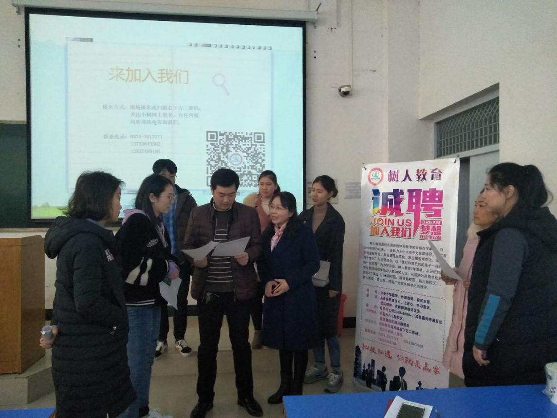 树人教育是经长葛市体教局批准的合格办学的机构,2010年创办以来,一直致力于小中高考文化课的辅导,以“教育质量极致化,常规管理规范化,家校服务常态化,学生辅导个性化”为发展理念,以“像对待自己的孩子一样对待每一位学员”为办学宗旨。树人教育9年深耕现已经发展了3个校区。树人教育负责人向全体学生介绍了树人教育的发展状况,以及所需要的岗位信息。在同学们关心的薪资以及前景问题上,招聘老师说薪水并不是看学历,是要看能力,在那里每年都会有考核,也是薪水多少的重要凭证,并举了一些现实例子。介绍完毕,同学们对树人教育负责人进行了提问,获得了一些更加详细的信息。会后,树人教育负责人又与同学们一对一沟通交流,并告诉大家自己的手机号,让同学们有问题可以打电话或加微信询问。
