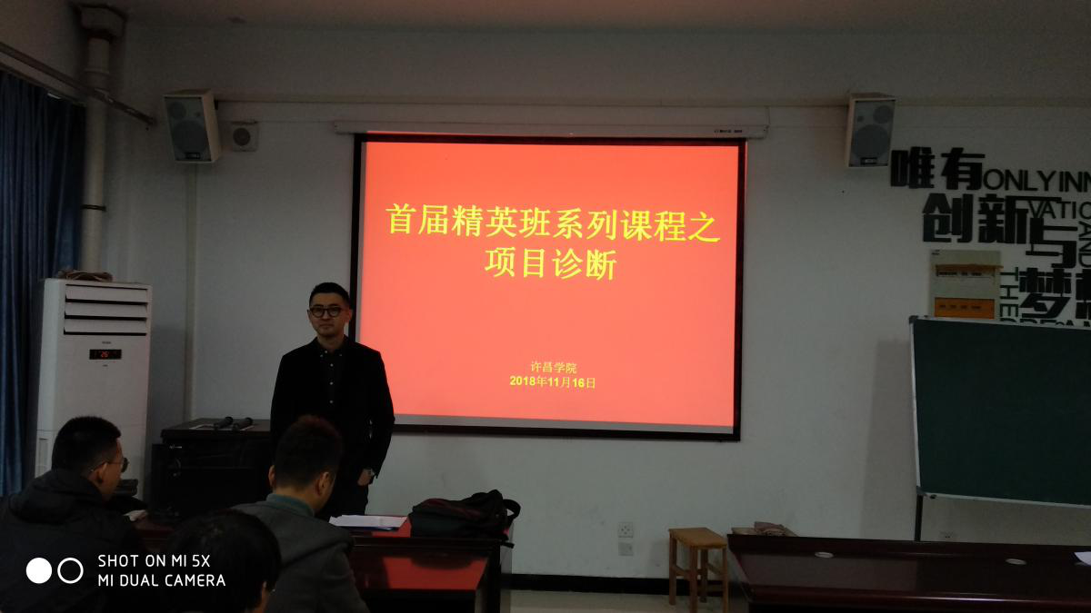 11月16日下午,我校首届创客精英班系列课程第五讲之《项目诊断》在大学生创新创业中心605教室开讲,本次课程由糖豆学院CEO、清华大学MBA、厦门大学新闻传播学硕士、创新创业学院专职创业导师刘杨主讲。