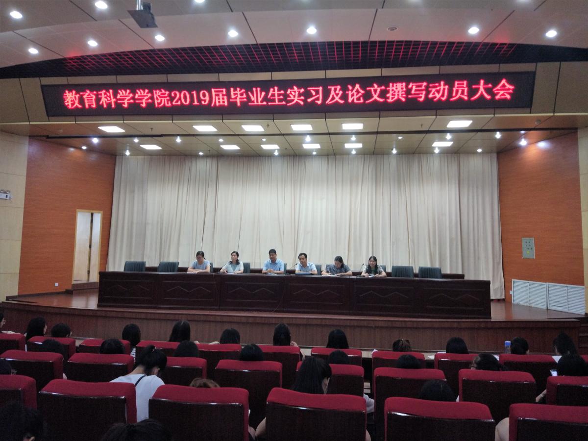 2018年9月3日上午9点,教育科学学院在学术报告厅举开展2019届毕业生实习及论文撰写动员大会。党总支副书记李晓鹏、副院长李松、副院长张笑涛、教学秘书陈向丽等出席了本次动员大会。