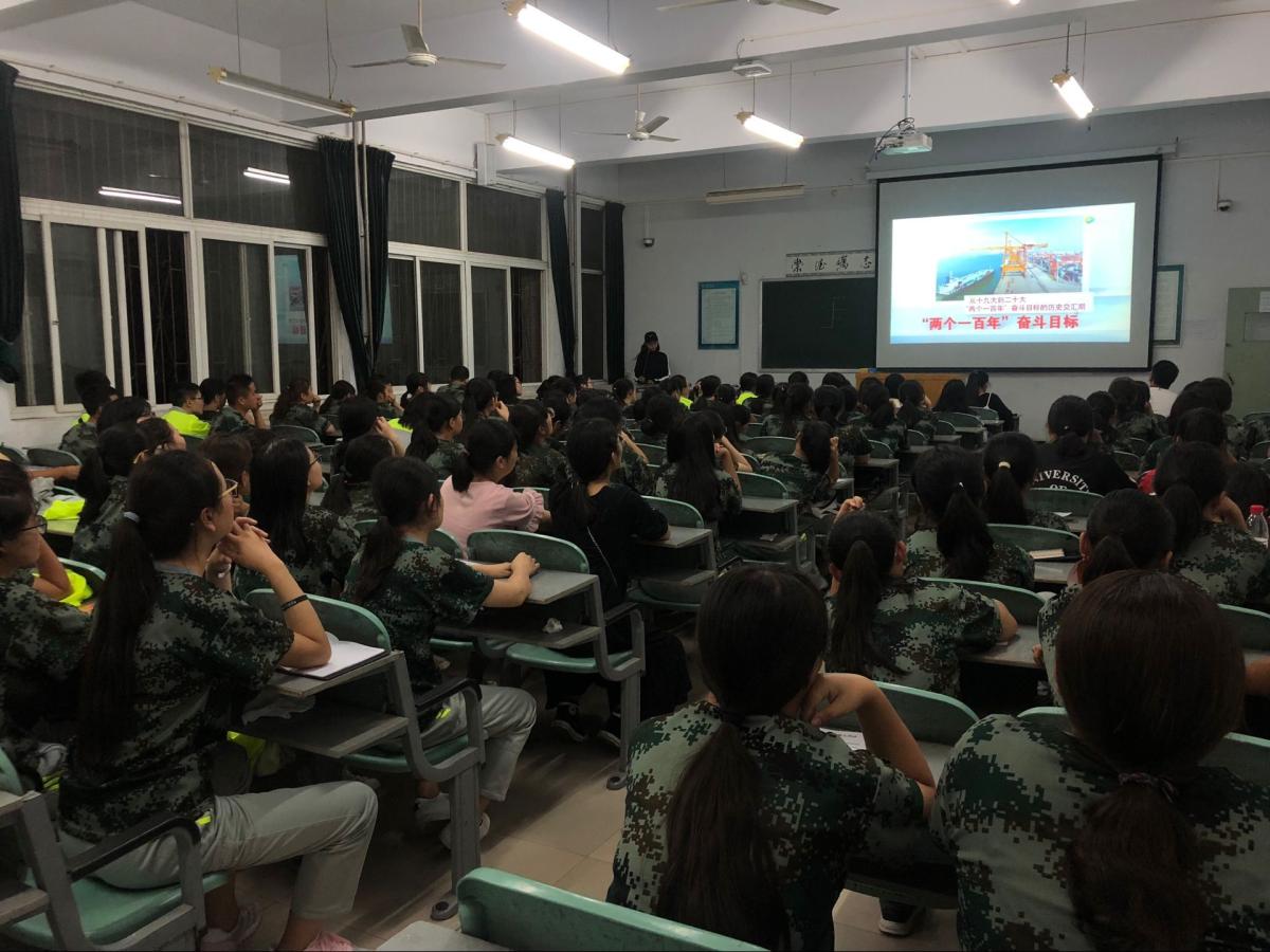 学生会成员们通过PPT展示的方式,详细地讲述了关于中国梦的“两个一百年”,在理论层面上厘清和辨识了“中国梦”与“两个一百年”奋斗目标的关系。团总支学生会为同学们放映了十九大党章公开课,学习我国党史国情,了解党在新时期的新要求,还为新时代大学生如何实现“两个一百年”奋斗目标提出了建议,希望新生们能够严格要求自己,积极营造班级文化和学校环境,广泛参与公益组织,认真理解“两个一百年”内容和目标,并在日常生活中坚持自己行为,传播正能量和中华民族优秀文化。