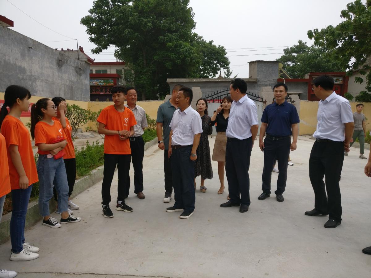 7月9日,许昌学院党委副书记孙海、学生处处长张鹏辉、宣传部部长冯晓民、工会主席高金星前来袁庄村慰问“袁梦启航”扶贫支教实践队全体队员,并送来了美好祝福和生活日用品。