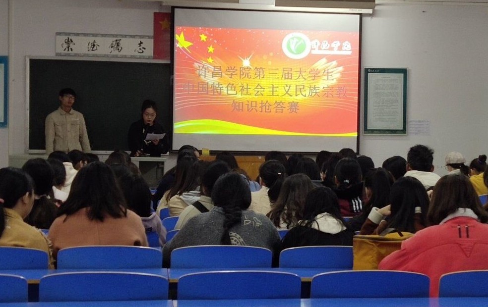 11月17日下午,我院大学生中国特色社会主义民族宗教理论知识竞赛在C楼302教室举行。竞赛由我院团总支组织,共有13支代表队参赛。