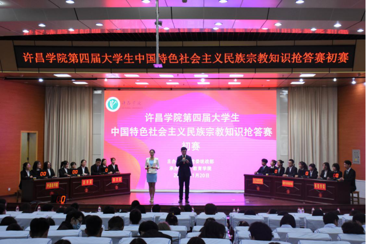 11月20日下午,由党委统战部主办、教育学院承办的许昌学院第四届大学生中国特色社会主义民族宗教知识抢答赛初赛在学术报告厅举办。我校18个院系的代表队参加了此次初赛,法学院尹晓兵博士、马克思主义学院李文君博士担任比赛仲裁评委。党委统战部部长崔越、副部长熊德兰,教育学院党委副书记陈荣华和全校200余名师生共同观看了比赛。