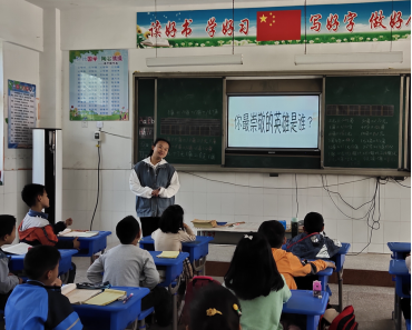 教工党支部带领学生宣讲团成员走进课堂为袁庄村的小学生们讲述王二小、雨来等英雄人物的故事,并和学生们一起领悟故事中的红色精神。小学生们对革命英雄充满崇敬,对成为中国共产党的接班人充满向往,树立了学习和生活中的榜样。