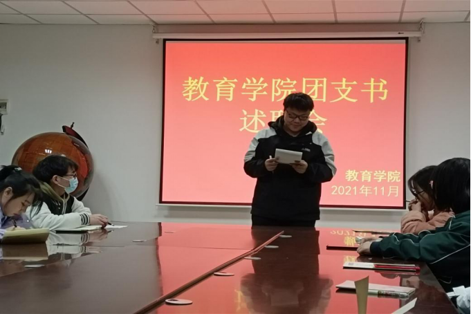 为加快建设高素质团组织队伍,将思想引领作用贯彻于共青团的日常工作之中。按照校团委相关文件要求,我院于2021年11月15日在文综楼E1621举行团支部述职大会。教育学院团委书记李征及各团支部委员参与本次评议。